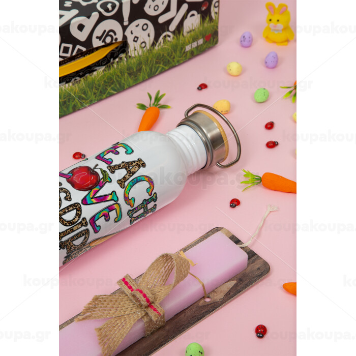 Teach, Love, Inspire, Πασχαλινή Λαμπάδα με παγούρι μεταλλικό (620ml, stainless steel) & κερί αρωματικό πλακέ (30cm) (ΡΟΖ)