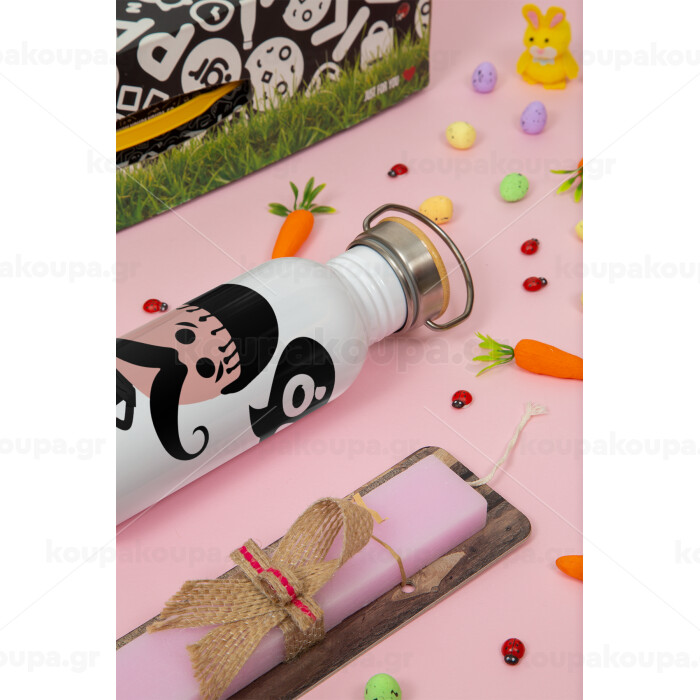 Κρητικός "Οι", Πασχαλινή Λαμπάδα με παγούρι μεταλλικό (620ml, stainless steel) & κερί αρωματικό πλακέ (30cm) (ΡΟΖ)