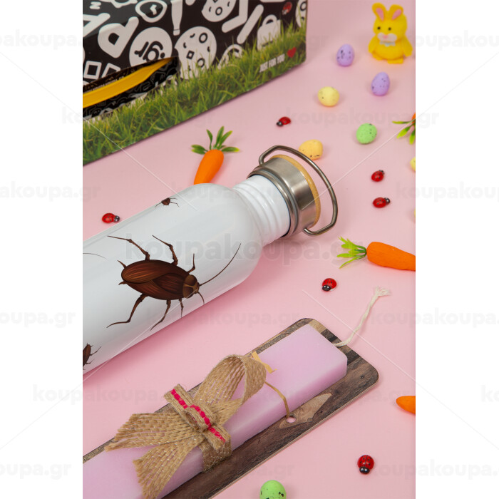 Κατσαρίδα, Πασχαλινή Λαμπάδα με παγούρι μεταλλικό (620ml, stainless steel) & κερί αρωματικό πλακέ (30cm) (ΡΟΖ)