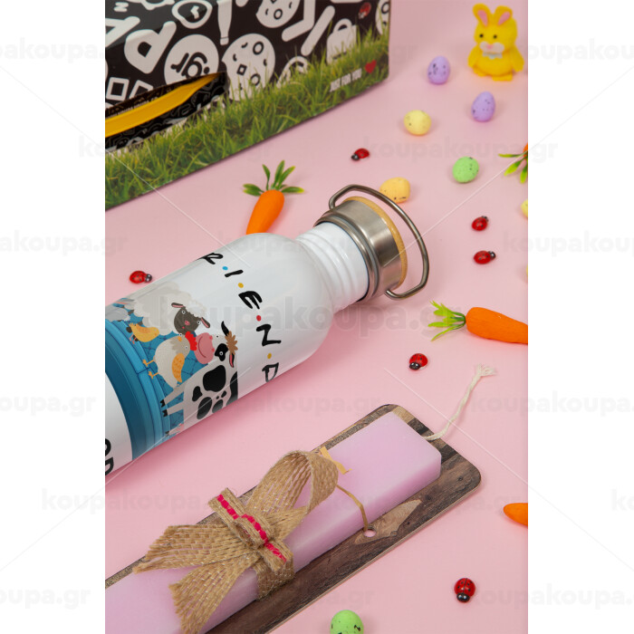 friends, not food, Πασχαλινή Λαμπάδα με παγούρι μεταλλικό (620ml, stainless steel) & κερί αρωματικό πλακέ (30cm) (ΡΟΖ)