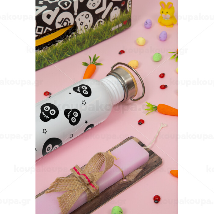 Skull avatar, Πασχαλινή Λαμπάδα με παγούρι μεταλλικό (620ml, stainless steel) & κερί αρωματικό πλακέ (30cm) (ΡΟΖ)