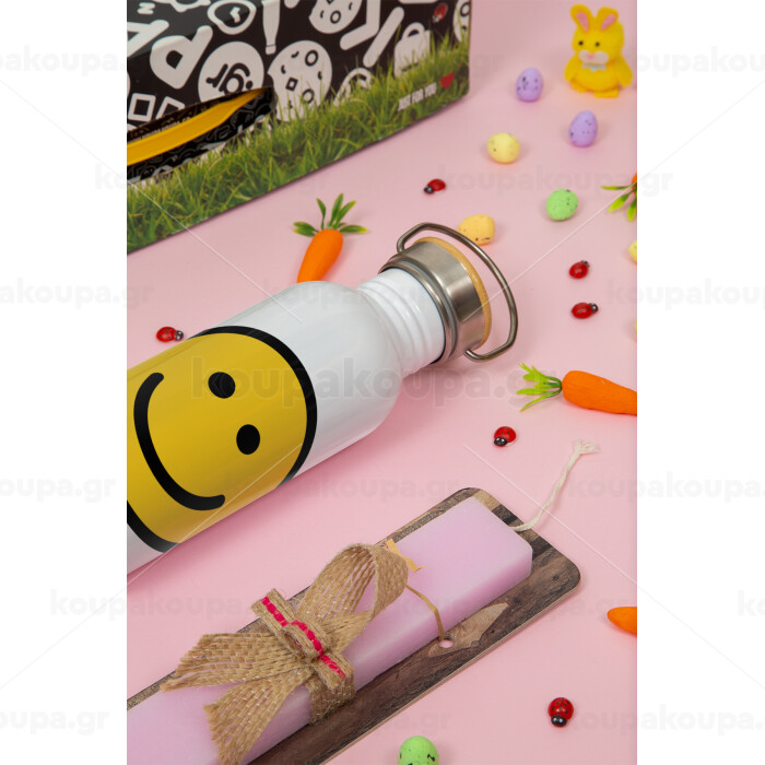 Smile classic, Πασχαλινή Λαμπάδα με παγούρι μεταλλικό (620ml, stainless steel) & κερί αρωματικό πλακέ (30cm) (ΡΟΖ)