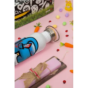 Among Trust no one, Πασχαλινή Λαμπάδα με παγούρι μεταλλικό (620ml, stainless steel) & κερί αρωματικό πλακέ (30cm) (ΡΟΖ)