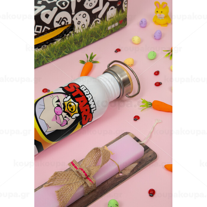 Brawl Stars Byron, Πασχαλινή Λαμπάδα με παγούρι μεταλλικό (620ml, stainless steel) & κερί αρωματικό πλακέ (30cm) (ΡΟΖ)