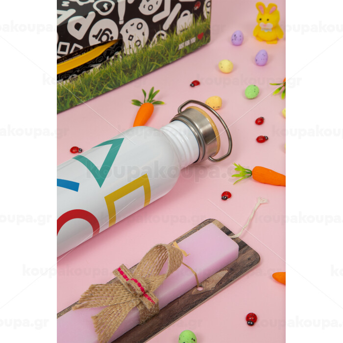 Gaming Symbols, Πασχαλινή Λαμπάδα με παγούρι μεταλλικό (620ml, stainless steel) & κερί αρωματικό πλακέ (30cm) (ΡΟΖ)