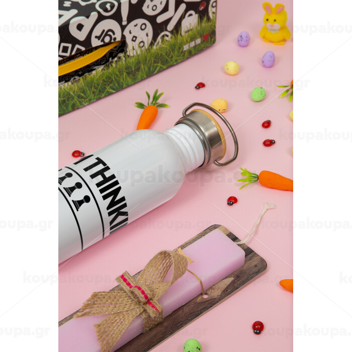 I'm thinking, Πασχαλινή Λαμπάδα με παγούρι μεταλλικό (620ml, stainless steel) & κερί αρωματικό πλακέ (30cm) (ΡΟΖ)