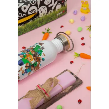 Minecraft adventure, Πασχαλινή Λαμπάδα με παγούρι μεταλλικό (620ml, stainless steel) & κερί αρωματικό πλακέ (30cm) (ΡΟΖ)