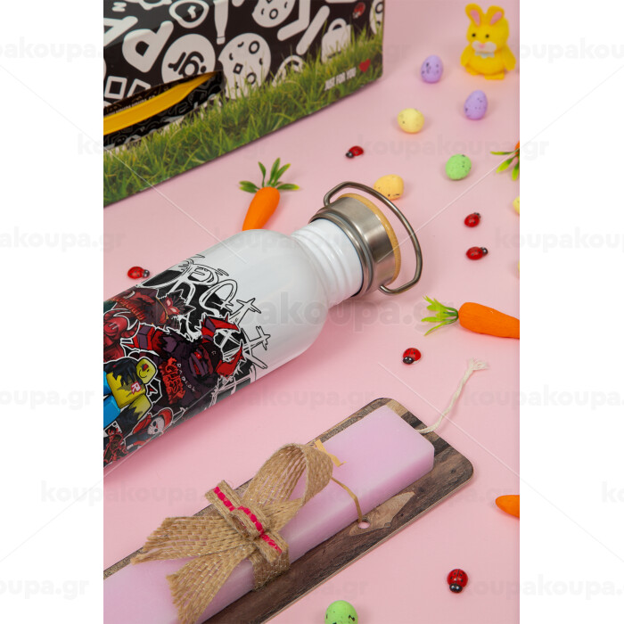 Roblox Forsaken, Πασχαλινή Λαμπάδα με παγούρι μεταλλικό (620ml, stainless steel) & κερί αρωματικό πλακέ (30cm) (ΡΟΖ)