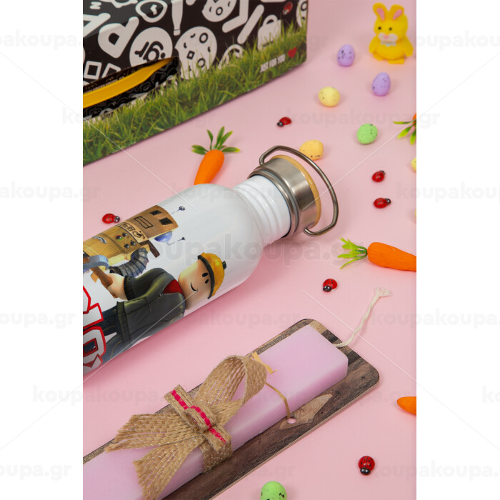 Roblox, Πασχαλινή Λαμπάδα με παγούρι μεταλλικό (620ml, stainless steel) & κερί αρωματικό πλακέ (30cm) (ΡΟΖ)