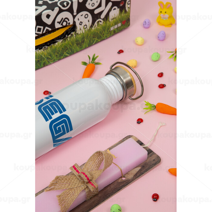 SEGA, Πασχαλινή Λαμπάδα με παγούρι μεταλλικό (620ml, stainless steel) & κερί αρωματικό πλακέ (30cm) (ΡΟΖ)