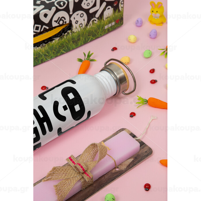 Code Heroes symbol, Πασχαλινή Λαμπάδα με παγούρι μεταλλικό (620ml, stainless steel) & κερί αρωματικό πλακέ (30cm) (ΡΟΖ)