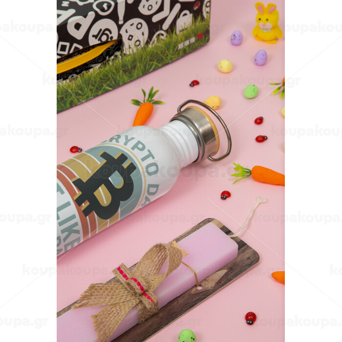 Crypto Dad, Πασχαλινή Λαμπάδα με παγούρι μεταλλικό (620ml, stainless steel) & κερί αρωματικό πλακέ (30cm) (ΡΟΖ)