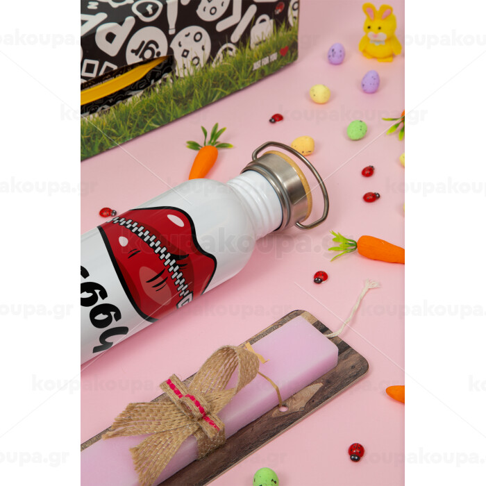 Σσσσς..., Πασχαλινή Λαμπάδα με παγούρι μεταλλικό (620ml, stainless steel) & κερί αρωματικό πλακέ (30cm) (ΡΟΖ)