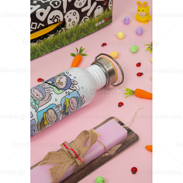 Labubu, Πασχαλινή Λαμπάδα με παγούρι μεταλλικό (620ml, stainless steel) & κερί αρωματικό πλακέ (30cm) (ΡΟΖ)