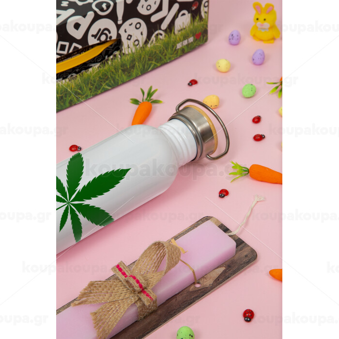 Weed, Πασχαλινή Λαμπάδα με παγούρι μεταλλικό (620ml, stainless steel) & κερί αρωματικό πλακέ (30cm) (ΡΟΖ)