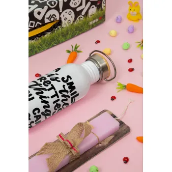 A smile is the prettiest thing you can wear, Πασχαλινή Λαμπάδα με παγούρι μεταλλικό (620ml, stainless steel) & κερί αρωματικό πλακέ (30cm) (ΡΟΖ)