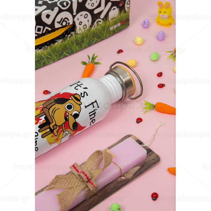 It's Fine I'm Fine Everything Is Fine, Πασχαλινή Λαμπάδα με παγούρι μεταλλικό (620ml, stainless steel) & κερί αρωματικό πλακέ (30cm) (ΡΟΖ)