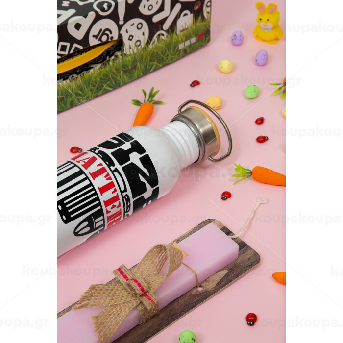 Size matters, Πασχαλινή Λαμπάδα με παγούρι μεταλλικό (620ml, stainless steel) & κερί αρωματικό πλακέ (30cm) (ΡΟΖ)