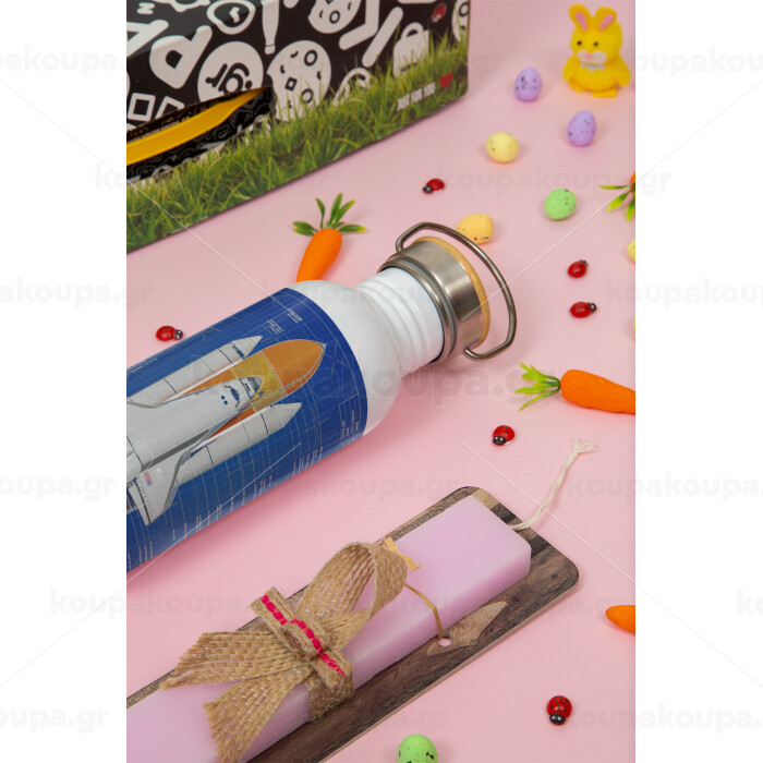 Nasa Space Shuttle, Πασχαλινή Λαμπάδα με παγούρι μεταλλικό (620ml, stainless steel) & κερί αρωματικό πλακέ (30cm) (ΡΟΖ)