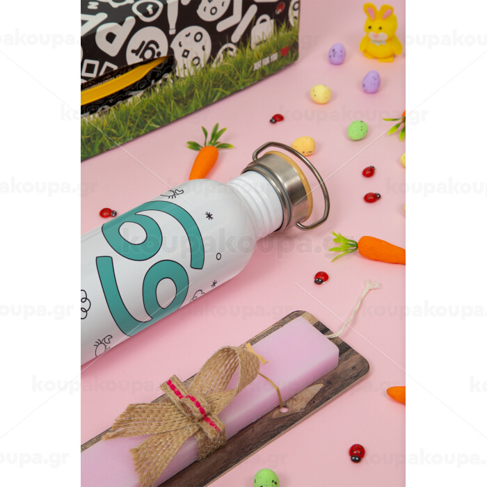 Ζώδια Καρκίνος, Πασχαλινή Λαμπάδα με παγούρι μεταλλικό (620ml, stainless steel) & κερί αρωματικό πλακέ (30cm) (ΡΟΖ)