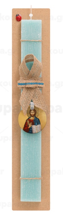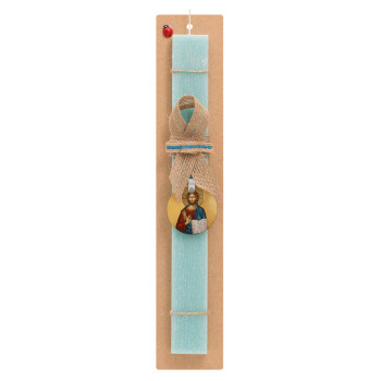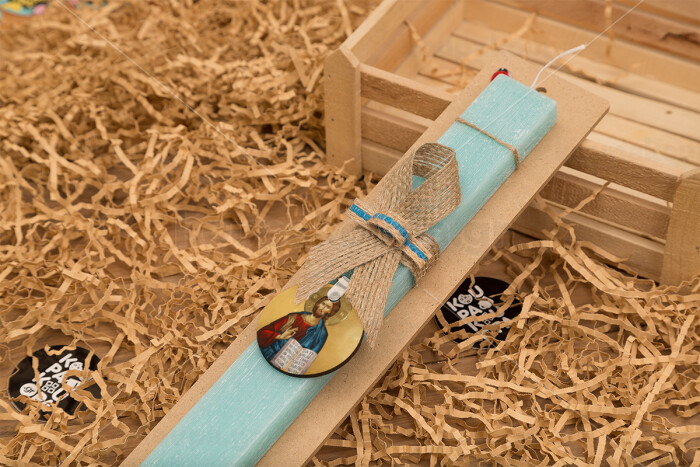 Ιησούς, Πασχαλινή Λαμπάδα με ξύλινο μπρελόκ & κερί αρωματικό πλακέ (30cm) (ΤΙΡΚΟΥΑΖ)
