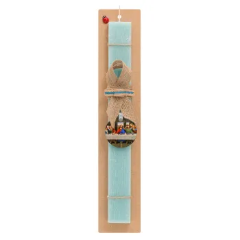 Μυστικός δείπνος, Πασχαλινή Λαμπάδα με ξύλινο μπρελόκ & κερί αρωματικό πλακέ (30cm) (ΤΙΡΚΟΥΑΖ)