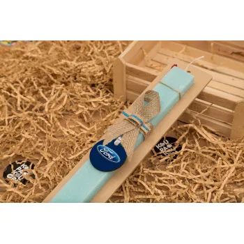 Ford, Πασχαλινή Λαμπάδα με ξύλινο μπρελόκ & κερί αρωματικό πλακέ (30cm) (ΤΙΡΚΟΥΑΖ)