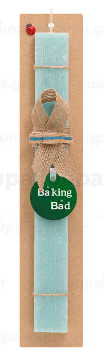 Baking Bad, Πασχαλινή Λαμπάδα με ξύλινο μπρελόκ & κερί αρωματικό πλακέ (30cm) (ΤΙΡΚΟΥΑΖ)