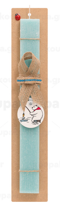 Αρκούδα ψαρεύει, Πασχαλινή Λαμπάδα με ξύλινο μπρελόκ & κερί αρωματικό πλακέ (30cm) (ΤΙΡΚΟΥΑΖ)