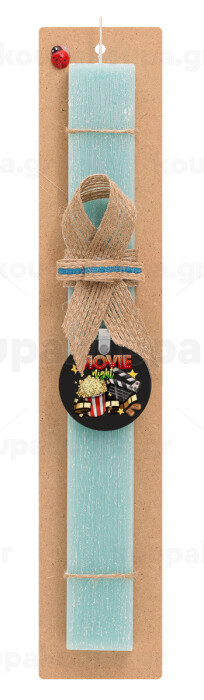 Movie night, Πασχαλινή Λαμπάδα με ξύλινο μπρελόκ & κερί αρωματικό πλακέ (30cm) (ΤΙΡΚΟΥΑΖ)