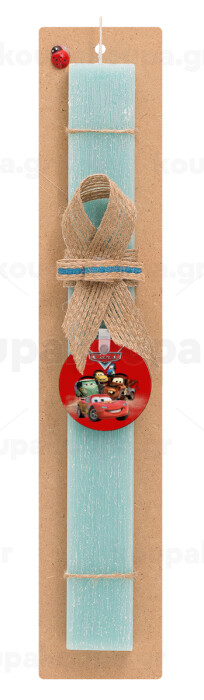 Αυτοκίνητα, Πασχαλινή Λαμπάδα με ξύλινο μπρελόκ & κερί αρωματικό πλακέ (30cm) (ΤΙΡΚΟΥΑΖ)