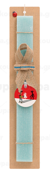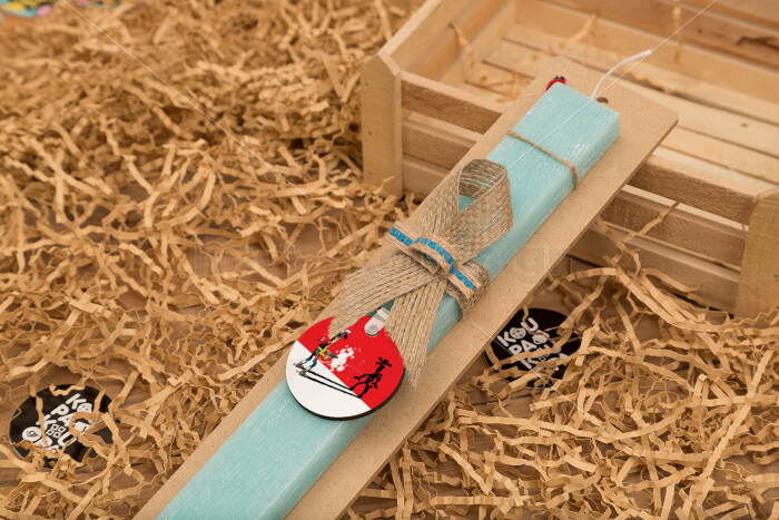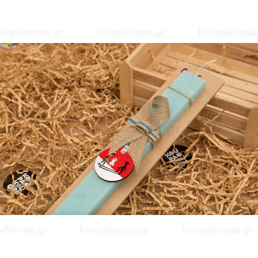 Λούκυ Λουκ σκιές, Πασχαλινή Λαμπάδα με ξύλινο μπρελόκ & κερί αρωματικό πλακέ (30cm) (ΤΙΡΚΟΥΑΖ)