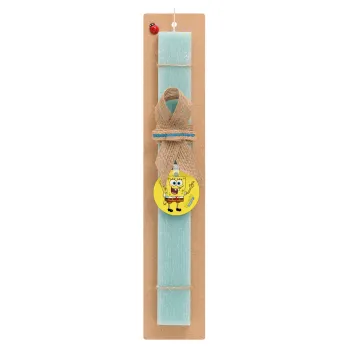 Μπομπ Σφουγγαράκης character, Πασχαλινή Λαμπάδα με ξύλινο μπρελόκ & κερί αρωματικό πλακέ (30cm) (ΤΙΡΚΟΥΑΖ)