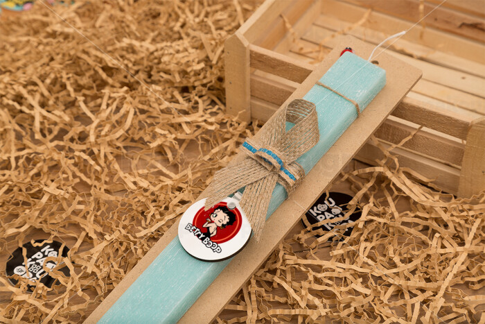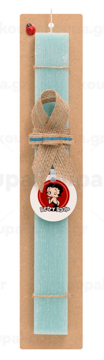 Betty Boop kiss, Πασχαλινή Λαμπάδα με ξύλινο μπρελόκ & κερί αρωματικό πλακέ (30cm) (ΤΙΡΚΟΥΑΖ)