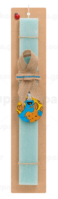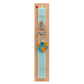 Cookie Monster, Πασχαλινή Λαμπάδα με ξύλινο μπρελόκ & κερί αρωματικό πλακέ (30cm) (ΤΙΡΚΟΥΑΖ)