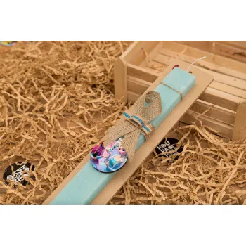 Έλσα & Άννα, Πασχαλινή Λαμπάδα με ξύλινο μπρελόκ & κερί αρωματικό πλακέ (30cm) (ΤΙΡΚΟΥΑΖ)