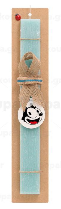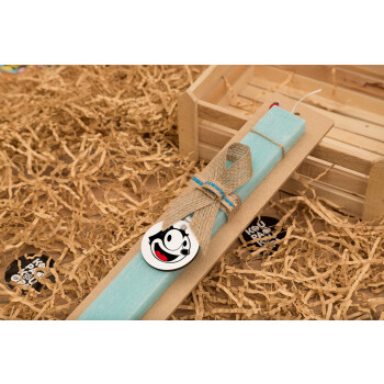 Felix the cat, Πασχαλινή Λαμπάδα με ξύλινο μπρελόκ & κερί αρωματικό πλακέ (30cm) (ΤΙΡΚΟΥΑΖ)