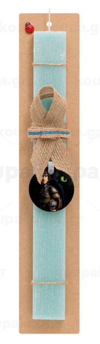 How to train your dragon Night Fury, Πασχαλινή Λαμπάδα με ξύλινο μπρελόκ & κερί αρωματικό πλακέ (30cm) (ΤΙΡΚΟΥΑΖ)