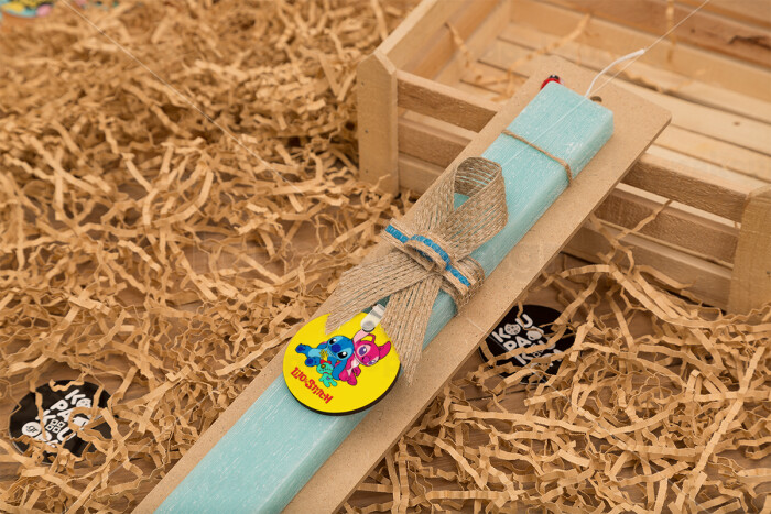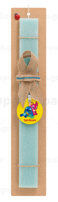 Lilo & Stitch, Πασχαλινή Λαμπάδα με ξύλινο μπρελόκ & κερί αρωματικό πλακέ (30cm) (ΤΙΡΚΟΥΑΖ)