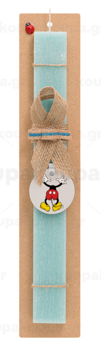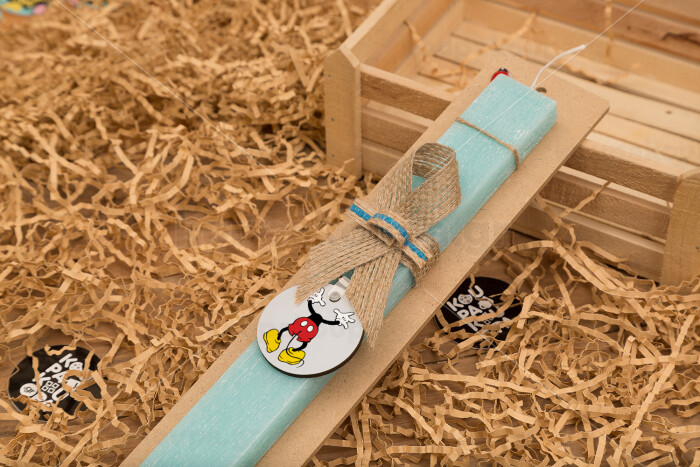 Mickey hide..., Πασχαλινή Λαμπάδα με ξύλινο μπρελόκ & κερί αρωματικό πλακέ (30cm) (ΤΙΡΚΟΥΑΖ)
