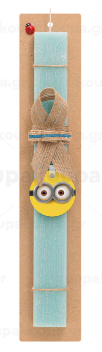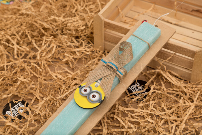 Minions, Πασχαλινή Λαμπάδα με ξύλινο μπρελόκ & κερί αρωματικό πλακέ (30cm) (ΤΙΡΚΟΥΑΖ)