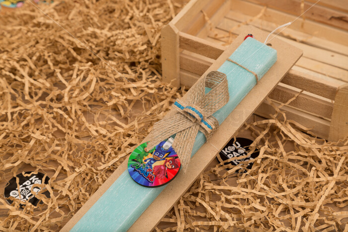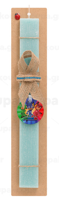PJ masks, Πασχαλινή Λαμπάδα με ξύλινο μπρελόκ & κερί αρωματικό πλακέ (30cm) (ΤΙΡΚΟΥΑΖ)