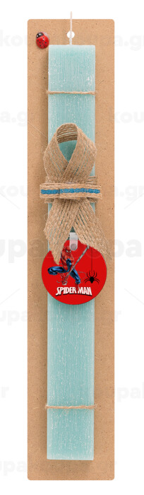 Spiderman fly, Πασχαλινή Λαμπάδα με ξύλινο μπρελόκ & κερί αρωματικό πλακέ (30cm) (ΤΙΡΚΟΥΑΖ)
