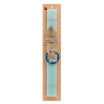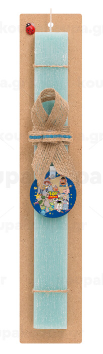toystory characters, Πασχαλινή Λαμπάδα με ξύλινο μπρελόκ & κερί αρωματικό πλακέ (30cm) (ΤΙΡΚΟΥΑΖ)