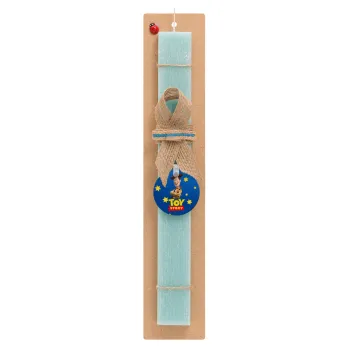 Woody cowboy, Πασχαλινή Λαμπάδα με ξύλινο μπρελόκ & κερί αρωματικό πλακέ (30cm) (ΤΙΡΚΟΥΑΖ)