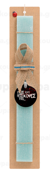 Πως τους πετσόκοψες έτσι..., Πασχαλινή Λαμπάδα με ξύλινο μπρελόκ & κερί αρωματικό πλακέ (30cm) (ΤΙΡΚΟΥΑΖ)
