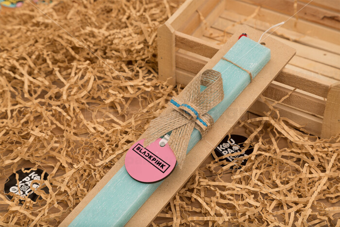 BLACKPINK, Πασχαλινή Λαμπάδα με ξύλινο μπρελόκ & κερί αρωματικό πλακέ (30cm) (ΤΙΡΚΟΥΑΖ)