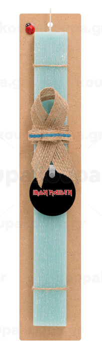 Iron maiden, Πασχαλινή Λαμπάδα με ξύλινο μπρελόκ & κερί αρωματικό πλακέ (30cm) (ΤΙΡΚΟΥΑΖ)
