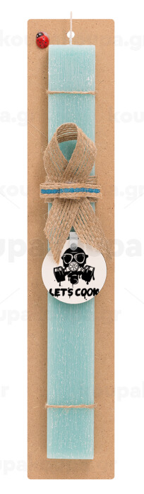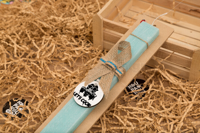 Let's cook mask, Πασχαλινή Λαμπάδα με ξύλινο μπρελόκ & κερί αρωματικό πλακέ (30cm) (ΤΙΡΚΟΥΑΖ)