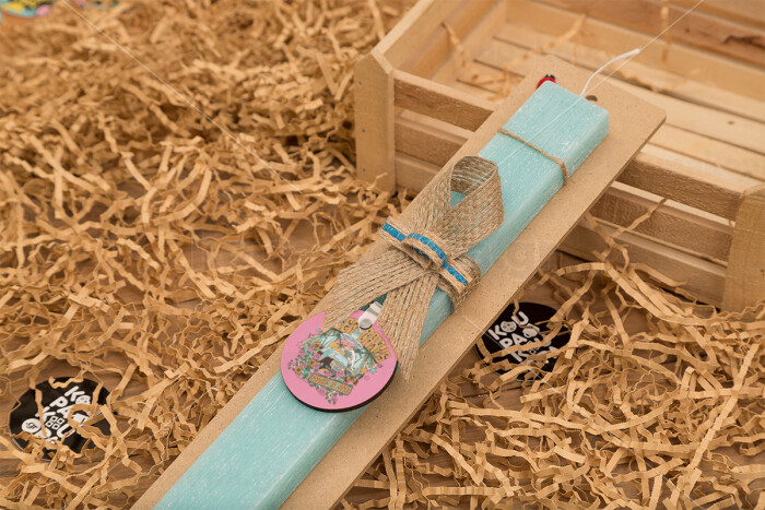 Outerbanks paradise on earth, Πασχαλινή Λαμπάδα με ξύλινο μπρελόκ & κερί αρωματικό πλακέ (30cm) (ΤΙΡΚΟΥΑΖ)